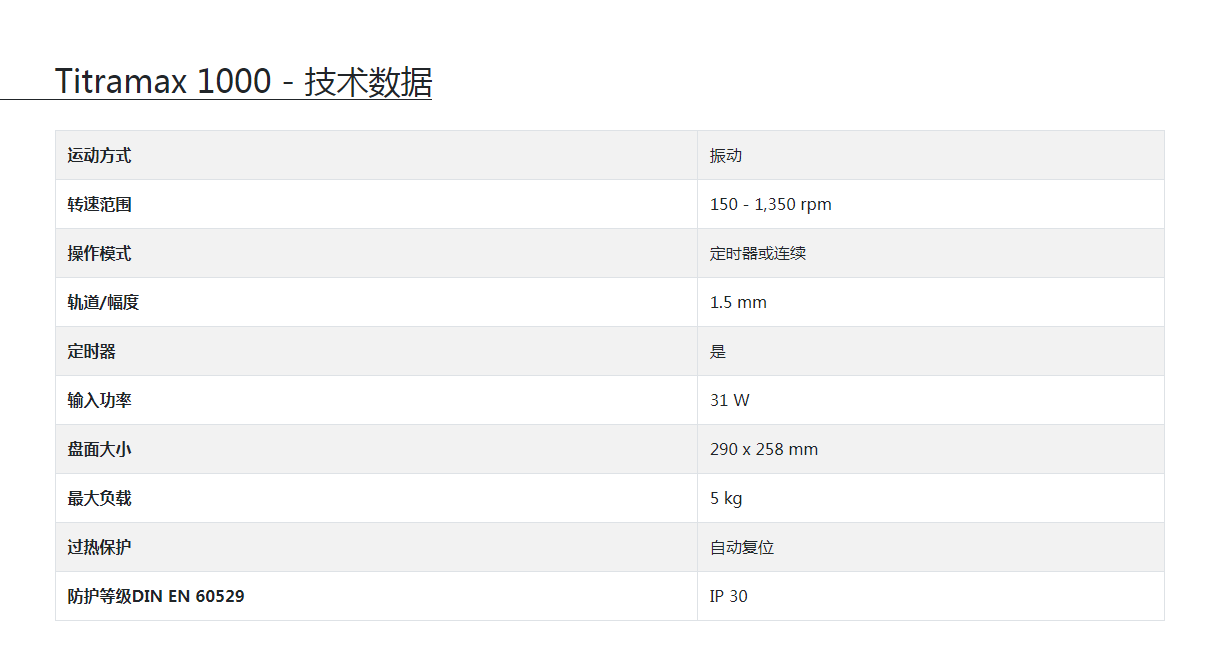 可搭配加熱模塊進行恒溫控制 該型號包含Titramax 100 的所有功能:1.5mm振幅、高達1,350 rpm的速度和定時功能。 可放置高達六個微孔板。將Titramax 1000與加熱模塊和保溫罩集成,從而實現恒溫搖床功能。 由于橡膠墊的凹槽和間距,可以輕松便捷地裝載和拆卸微孔板。